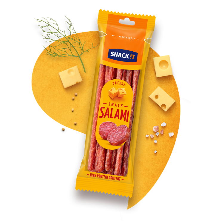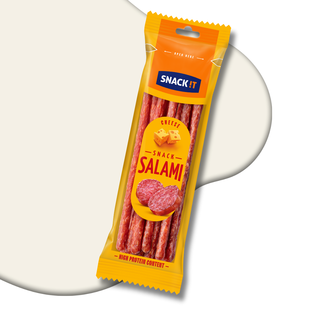 Salami Snack is a true classic in a new form! The product you know and love, now offered as a convenient snack. Handy, packed with cheese flavor, and unique on the market. Give it a try and rediscover salami!